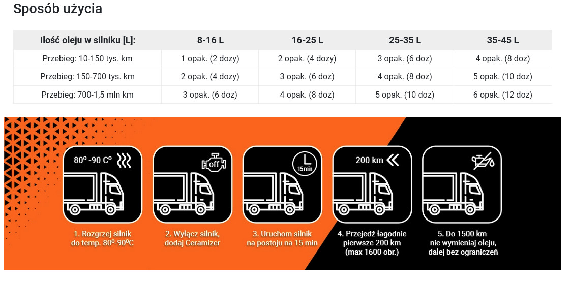 Przebieg: 700-1,5 mln km 3 opak. (6 doz) 4 opak. (8 doz) 5 opak. (10 doz) 6 opak. (12 doz)